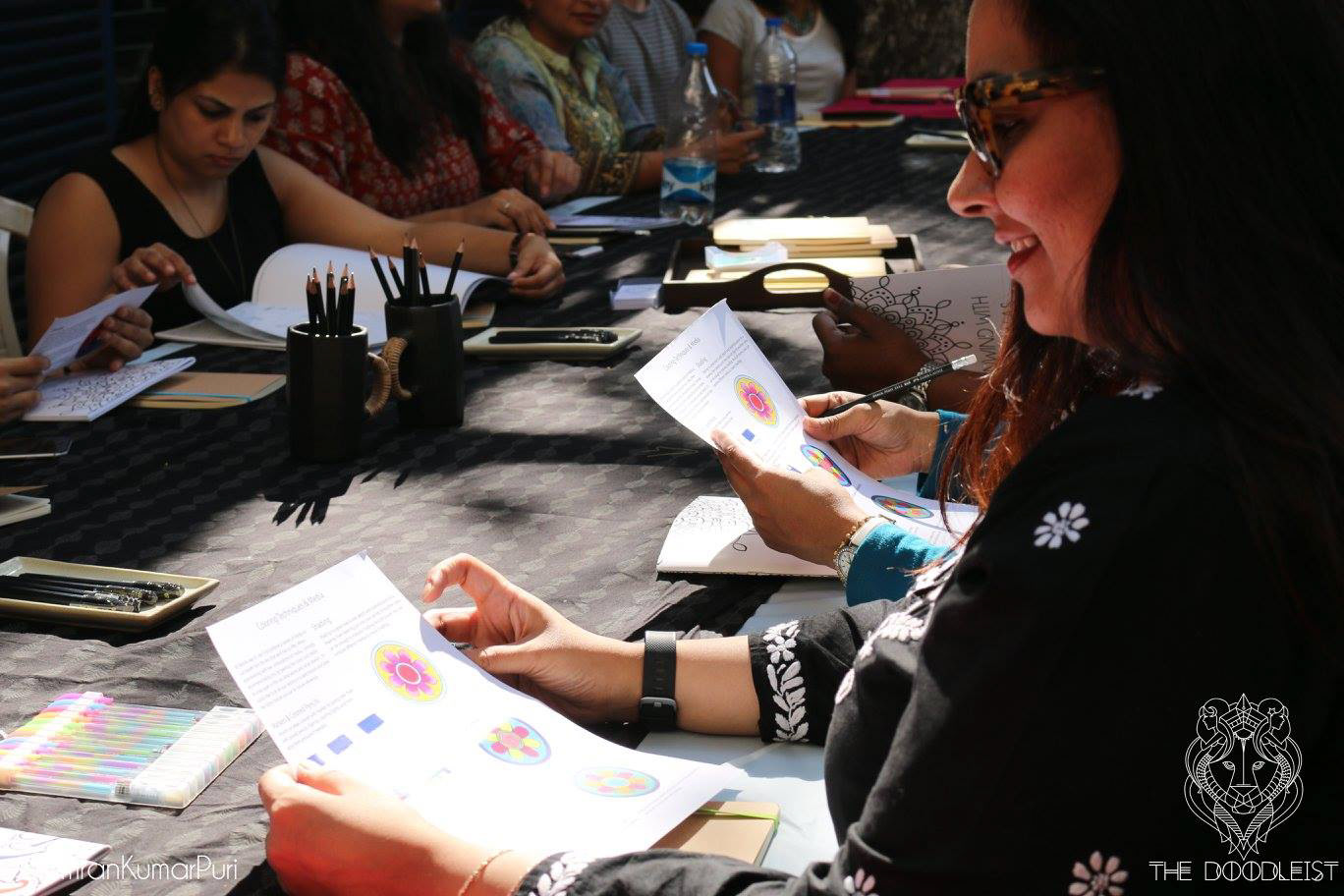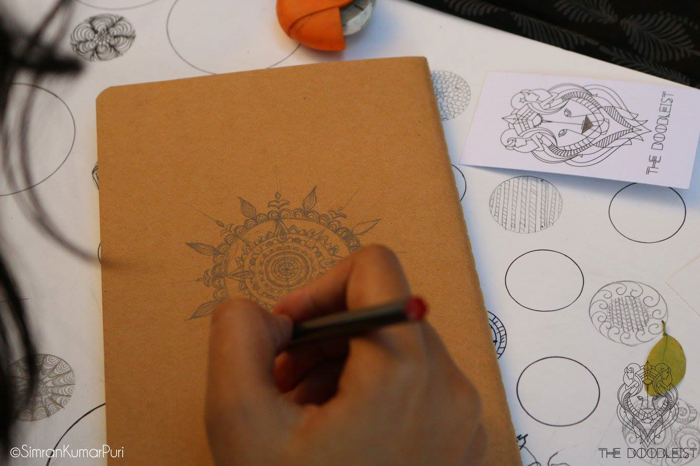 Mandala Workshop at Bliss in Versova, The idea behind the workshop was to use art form to find inner peace. Towards the end of the workshop participants took home a customized cover mandala notebook created by them