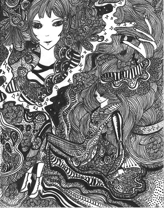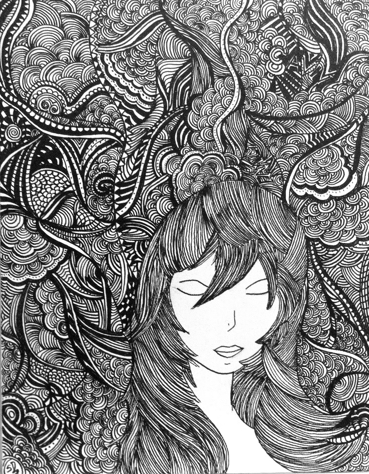 Lost in Thought is a personal doodle project displaying the chaos of the mind and thoughts, the characters depicted are mainly female, the intricate line work depicts the state of mind.
