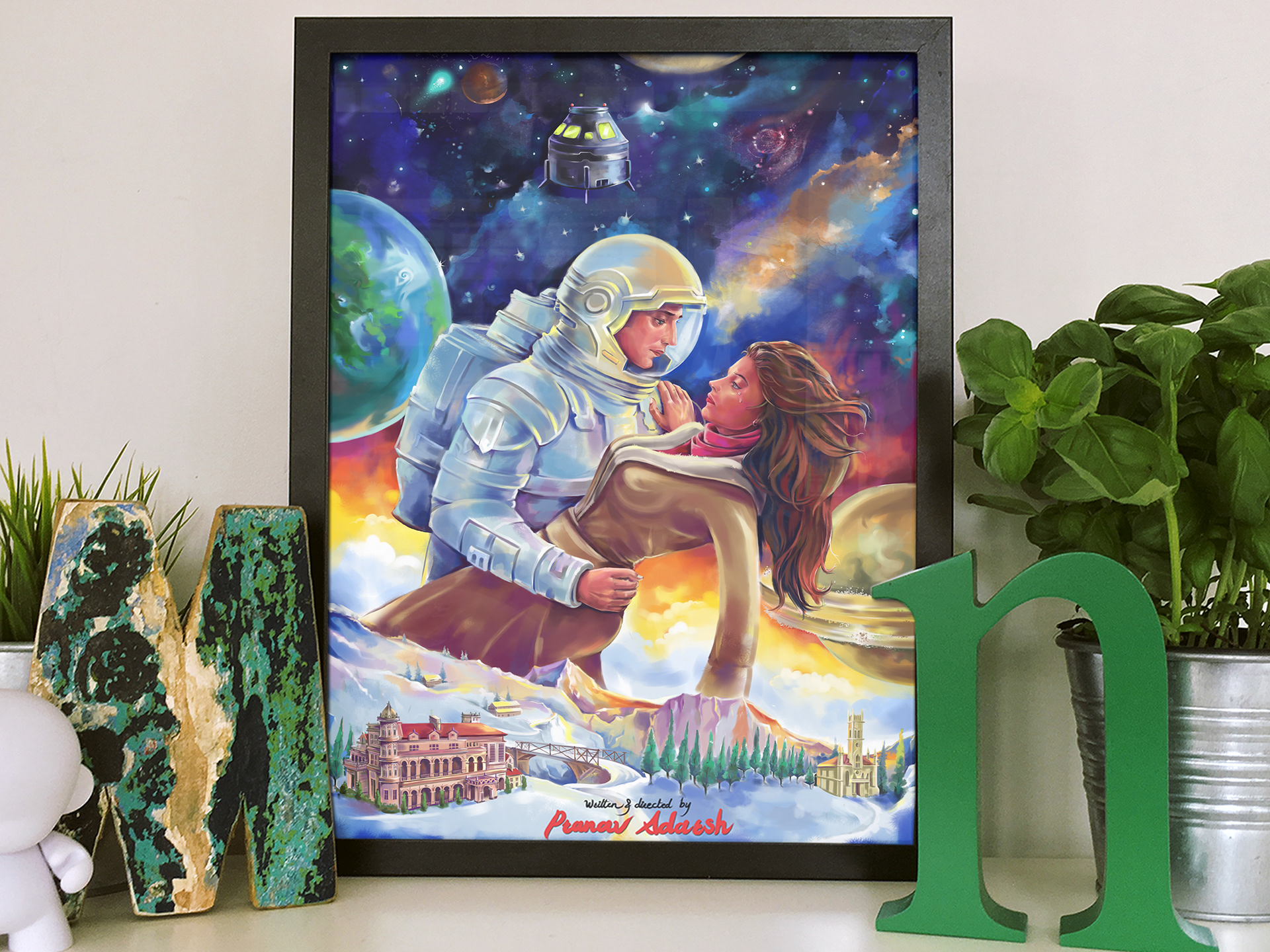 The brief was to create a digitally painted poster for a story written and directed by Pranav Adarsh. The concept was to show 2 lovers who cannot be together an astronaut, and a hometown girl.